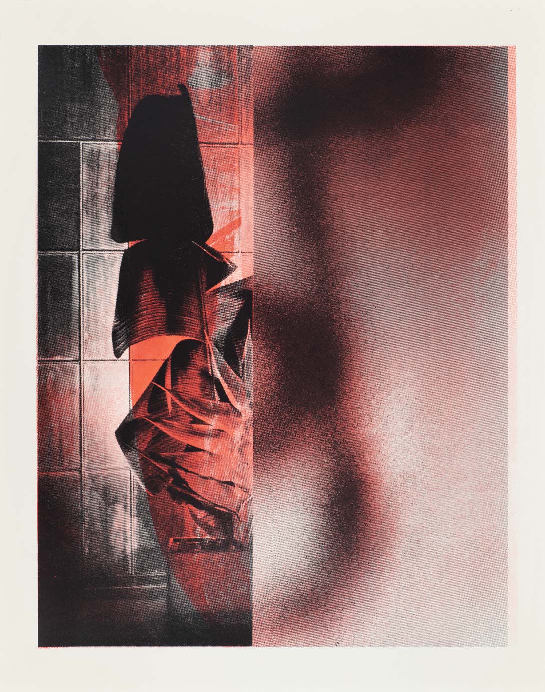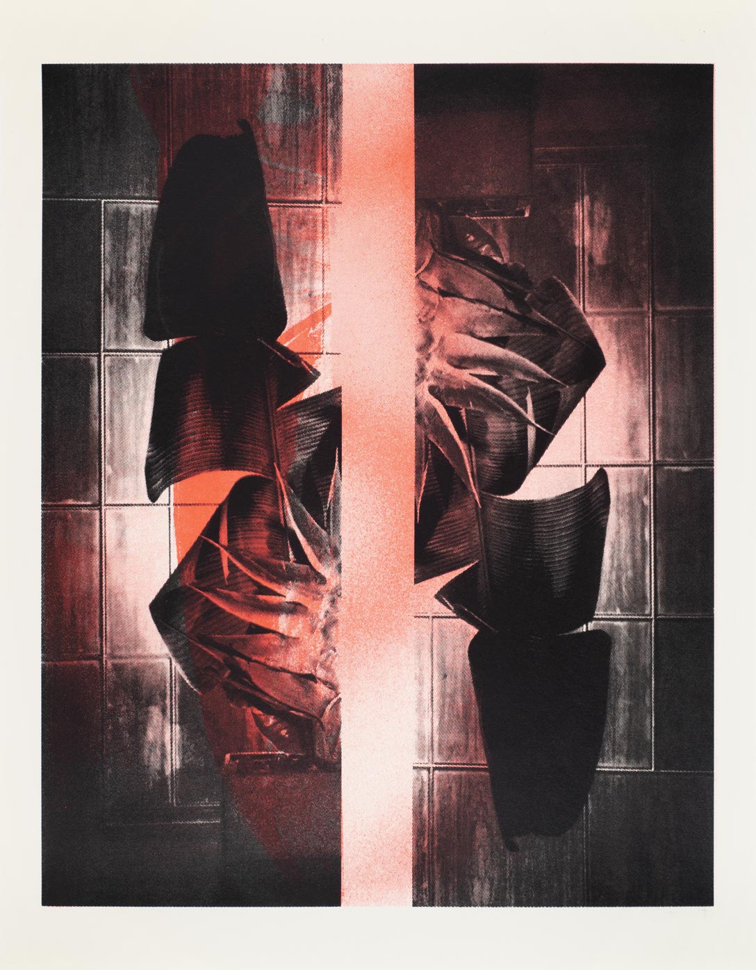 Screenprints (unique), one and two colors, approximately 22 x 18″ on found vintage paper, 2021.